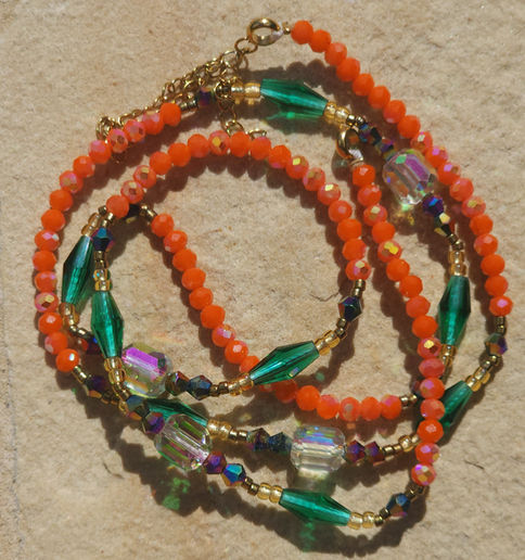 L’orange est la couleur de l’enthousiasme, du plaisir et du mouvement. Elle stimule la créativité, l’expression personnelle et l’audace douce. Les perles holographiques captent la lumière à chaque pas, te rappelant que ton énergie est vivante, vibrante et contagieuse.